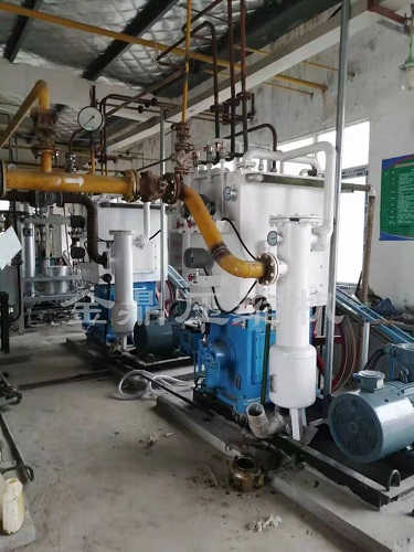 氣體經系統閥門由進氣管路進入壓縮機內,經壓縮機壓縮后,由排氣連通管排入氣液分離器中,經氣液分離器排出。